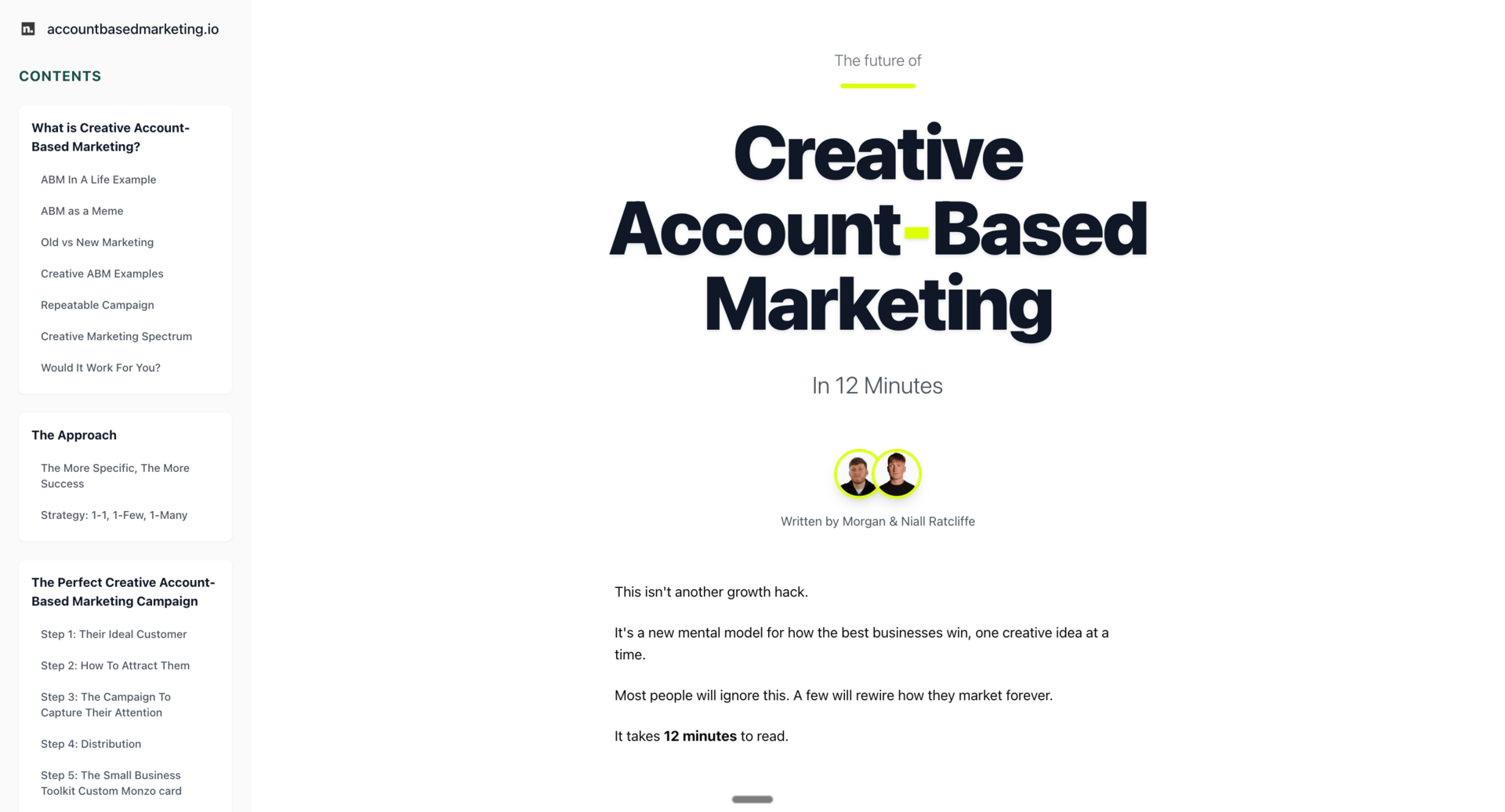 Over the next few weeks, he’d put together this long essay on “The Future Of Creative Account-Based Marketing” (our main service offering).