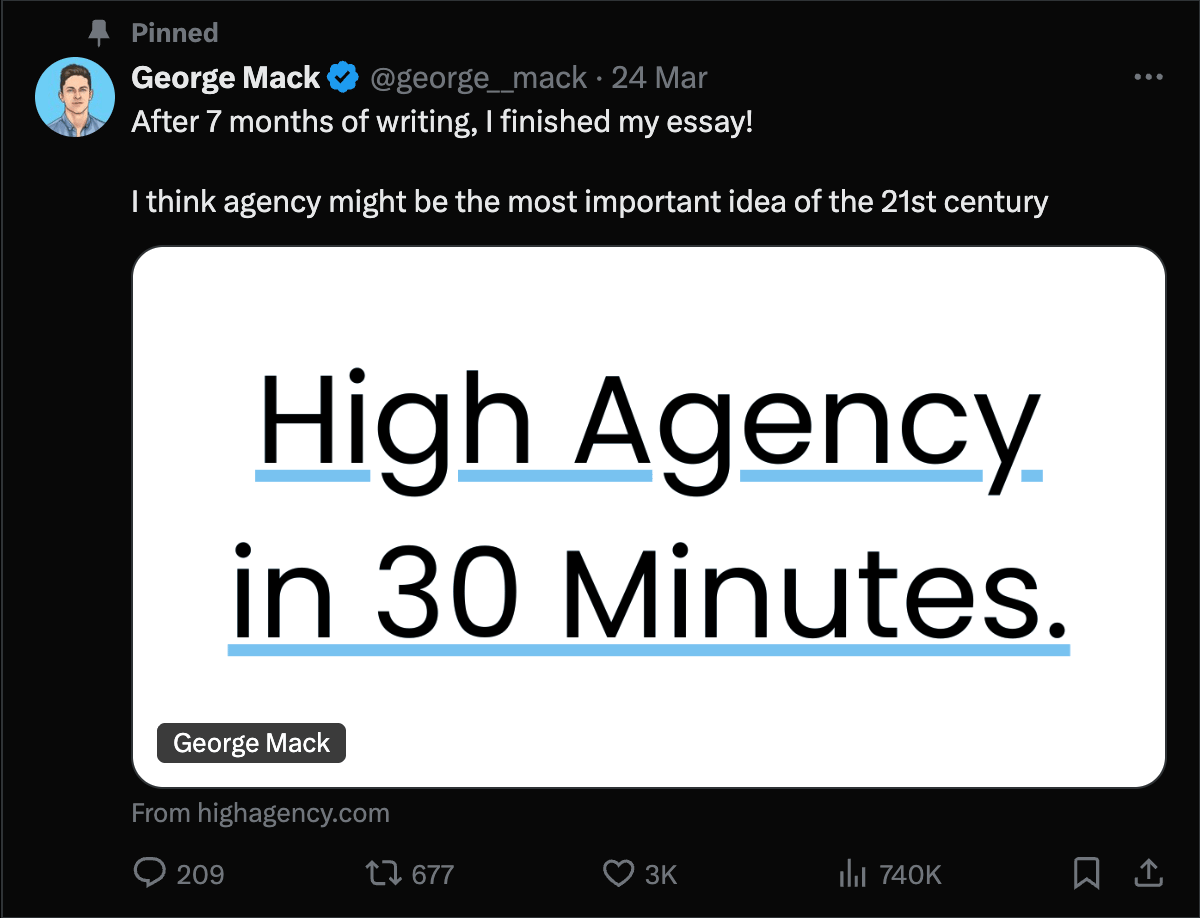 7 months ago, a marketer on Twitter called George Mack released an essay called “High Agency” that took the platform by storm.